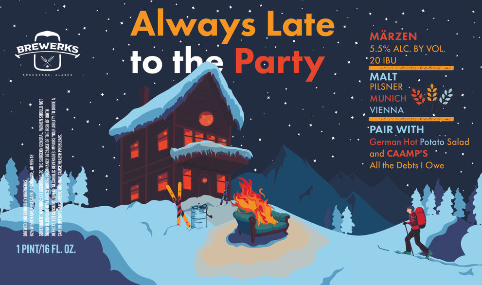 I began designing cans for Brewerks in May of 2023. My girlfriend and life partner Jenn was preparing to hang her hyper realistic landscape paintings there and Chad mentioned to her that he was looking for local talent to design his cans. Jenn suggested to Chad that I would be a great candidate for the job. I emailed Chad a sampling of my work and we soon scheduled a meet up. I had been wanting to design cans for years but had never had the opportunity besides a one off painted can for Girdwood Brewing.